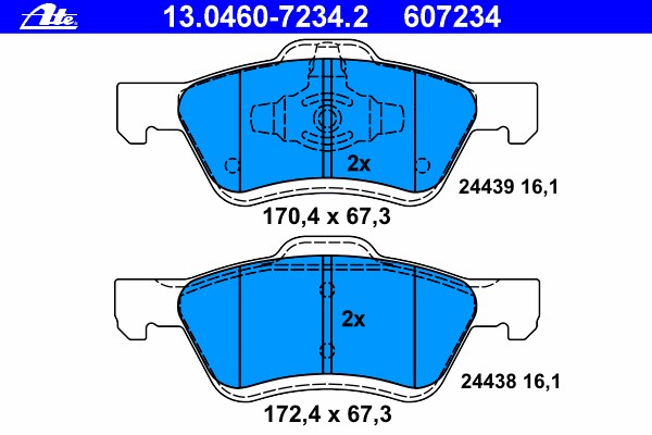 13046072342 ATE Колодки тормозные дисковые передн, FORD: MAVERICK 2.0 16V/2.3 16V/3.0 V6 24V 01- \ MAZDA: TRIBUTE 2.3 AWD/3.0 V6 AWD 00-08