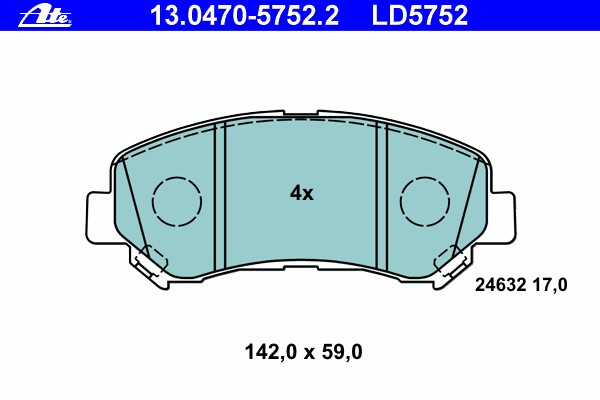 13047057522 ATE Колодки тормозные дисковые передн, CERAMIC, NISSAN: QASHQAI/ QASHQAI +2 1.5 dCi/1.6/1.6 dCi/1.6 dCi 4WD/2.0/2.0 dCi/2.0 dCi 4WD/2.0 4WD 07-, X-TRAIL 2.0/2.0 FWD/2.0 dCi/2.0 dCi
