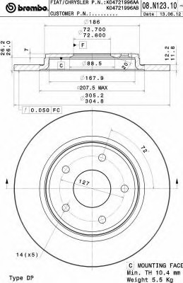 Brembo 08N12311 Тормозной диск