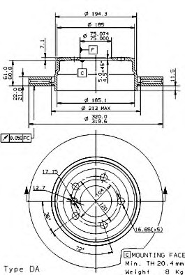 Brembo 09957311 Диск тормозной задн. с УФ покрытием BMW X3 (E83) 01/03-12/11