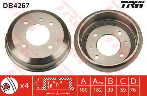 Trw DB4267 Барабан тормозной HYUNDAI ACCENT II 180мм, высота 39мм DB4267