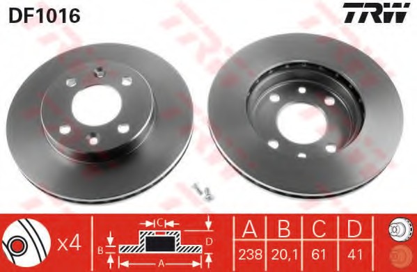 DF1016 TRW Диск тормозной передний TRW DF1016