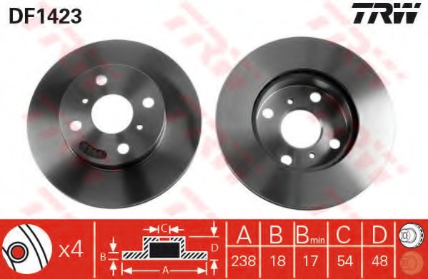 Trw DF1423 Диск тормозной передний TOYOTA COROLLA (E9, E10) DF1423