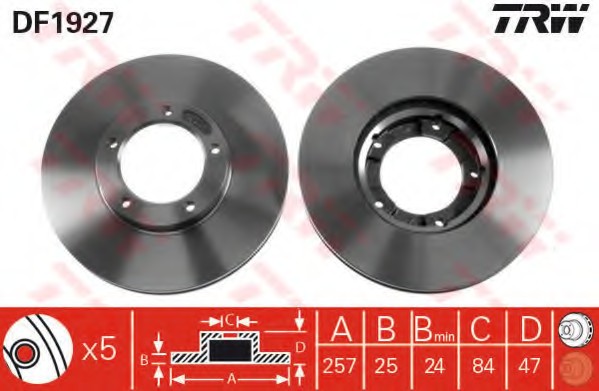 Trw DF1927 Диск тормозной передний TOYOTA HIACE II, HILUX II (257мм) DF1927